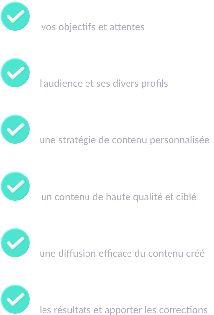 Avec l’aide de notre équipe, vous serez en mesure de créer ces contenus et de les diffuser stratégiquement pour toucher vos cibles au moment opportun.